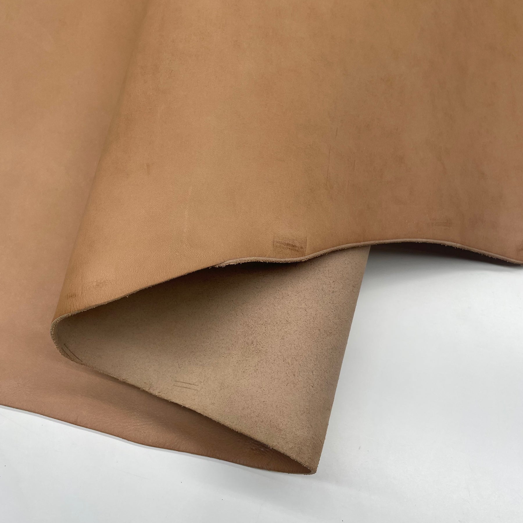 少量のクロムが含まれた程よいコシと硬さが特徴のヌメ革となります。
